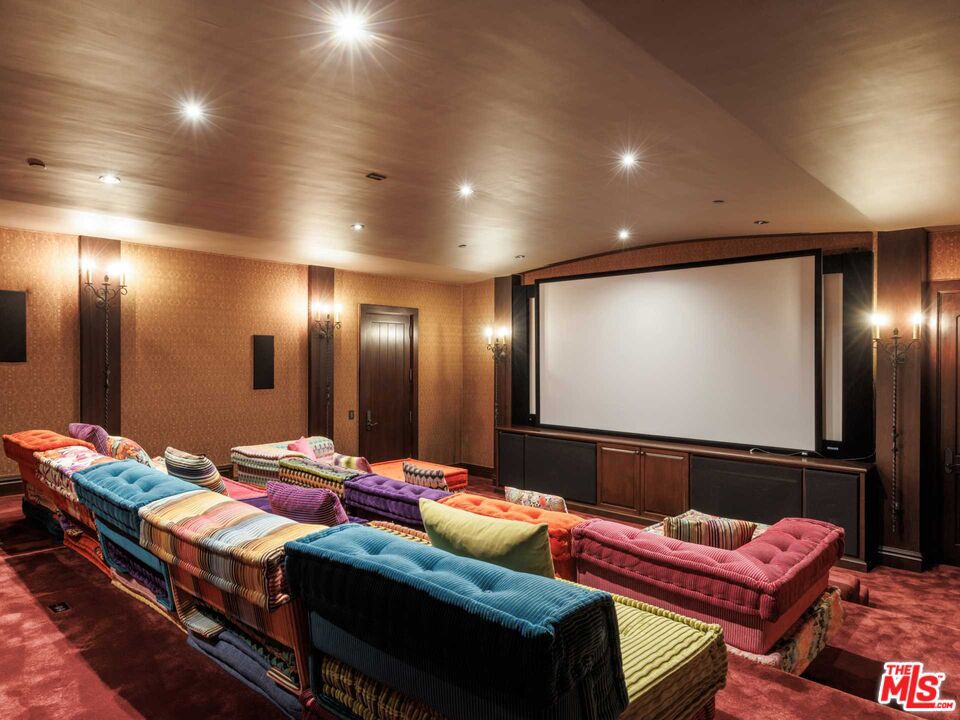 Further on lies a state-of-the-art movie theater plus a cozy family room with access to an outdoor dining patio and fountain.