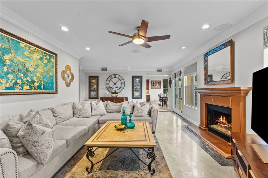 The Abbeywood estate in Monte Vista offers a serene retreat, featuring a glass fireplace framed by a stunning mother-of-pearl bench with a marble top. For effortless modern living, smart home automation integrates advanced security, lighting, and an audio-video system throughout the estate.