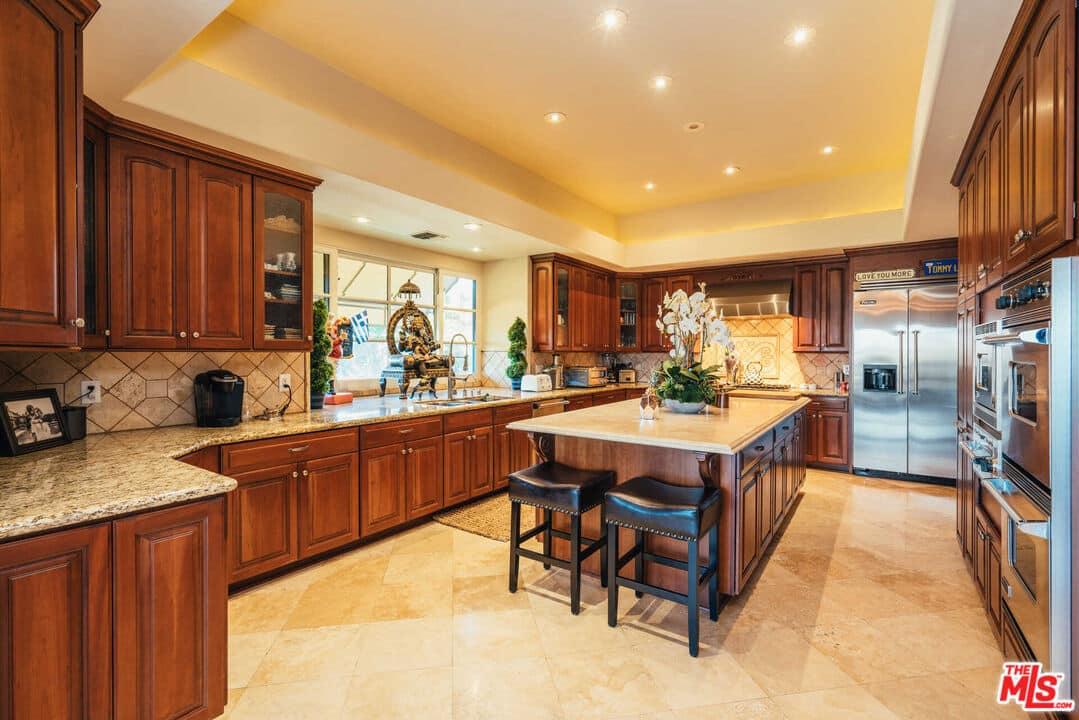 Through a retractable roof, natural light illuminates a lush atrium with natural tropics. Flow and scale are far and wide in this unique Calabasas Mansion.