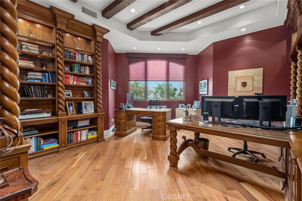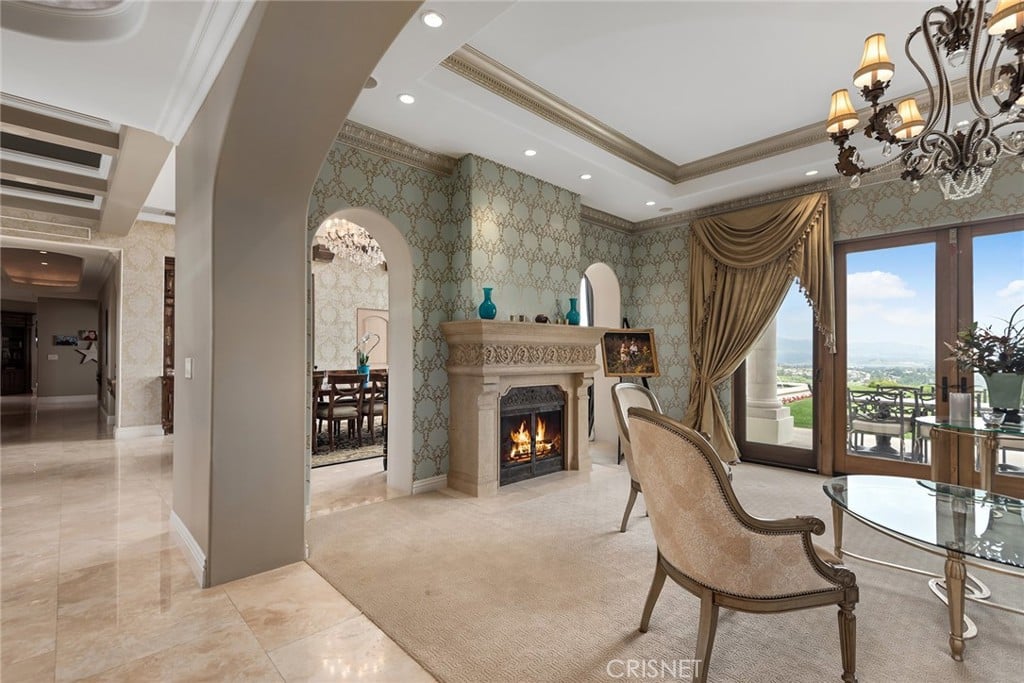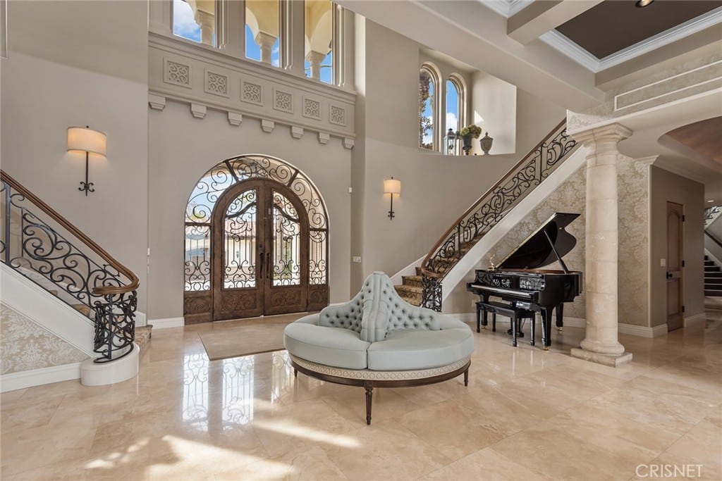 It provides privacy with nearly 270 degree views that encompass Bell Canyon, the San Fernando Valley, and Calabasas. Measuring close to 11,000 square feet of luxury living, you will enter through the entry doors into the two story grand foyer which leads to sizable living areas with high ceilings.