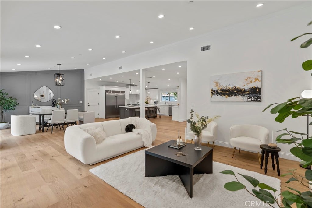 Welcome to this beautifully updated pool home, located just south of Ventura Boulevard in Woodland Hills. As soon as you enter, the engineered hardwood flooring exudes luxuriousness underfoot.