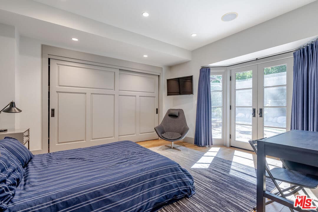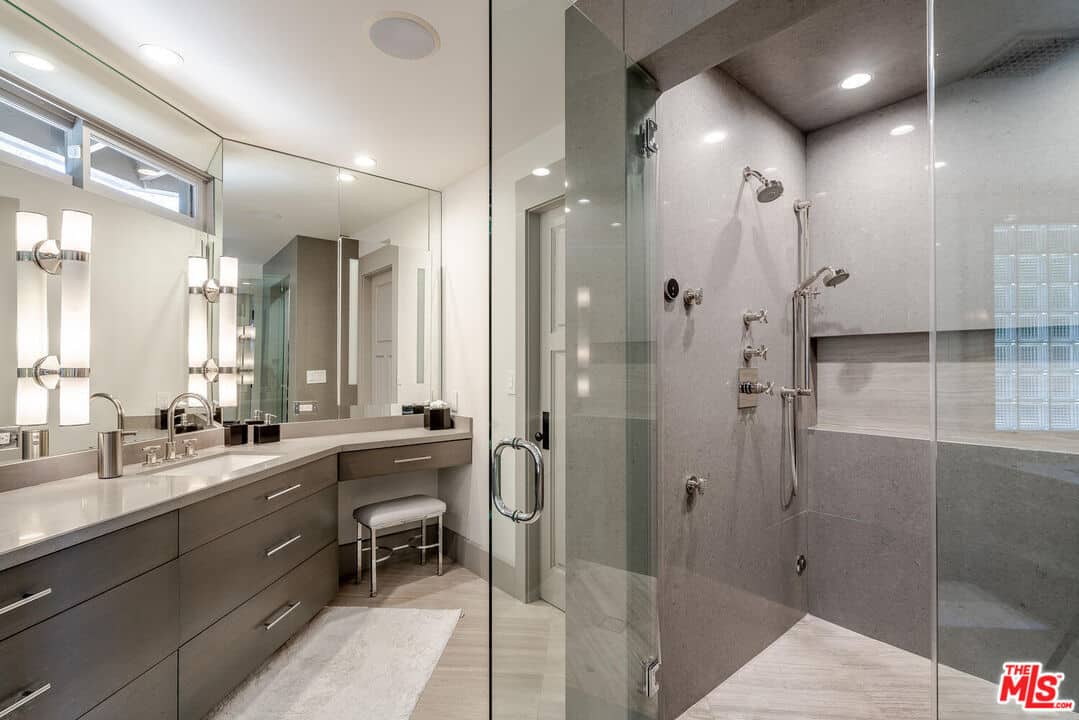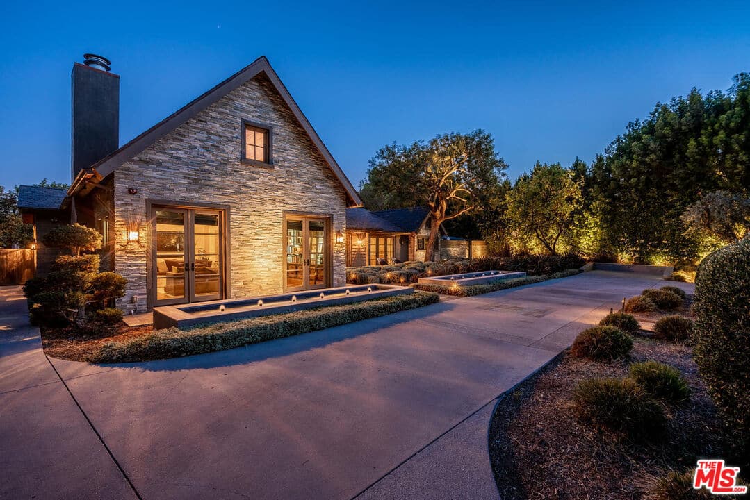The single-story extravagance estate is situated at the end of a cul-de-sac on over an acre of flat, view property. With custom details, the home has four bedrooms, four and a half bathrooms plus an office. The Calabasas Extravagance Home has two master suites, a great room with custom built-in shelves, an antique fireplace, and a dining room with a lit antique panel and 300 bottle wine rack. Both master suites are spacious and include fireplaces and sitting areas, as well as walk-in closets.