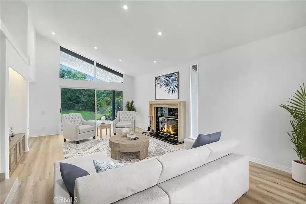 Upon entering, you’re greeted by a spacious living area where high ceilings and large windows create a bright, airy atmosphere, inviting an abundance of natural light. With its open floor plan, this home is an entertainer’s dream, providing a seamless flow between the living spaces and the outdoors.