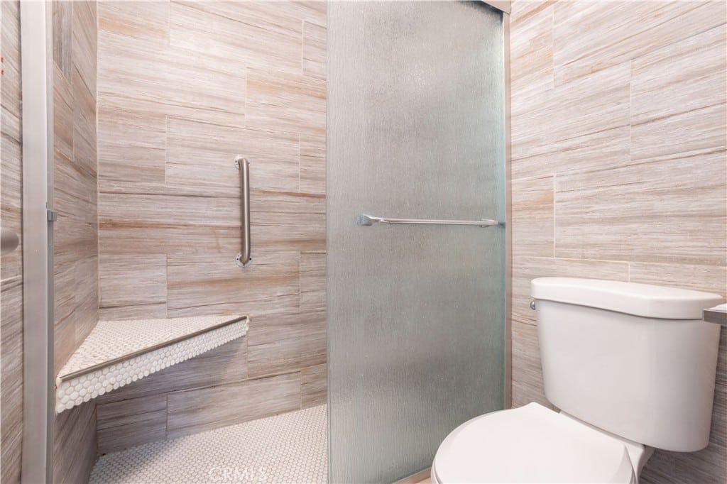 The primary bedroom comes with a walk-in closet and a private bathroom featuring a step-in shower, shelf, shower grab bar, and an updated vanity and countertop. For your convenience, you’ll find washer/dryer hookups right in the primary bedroom.