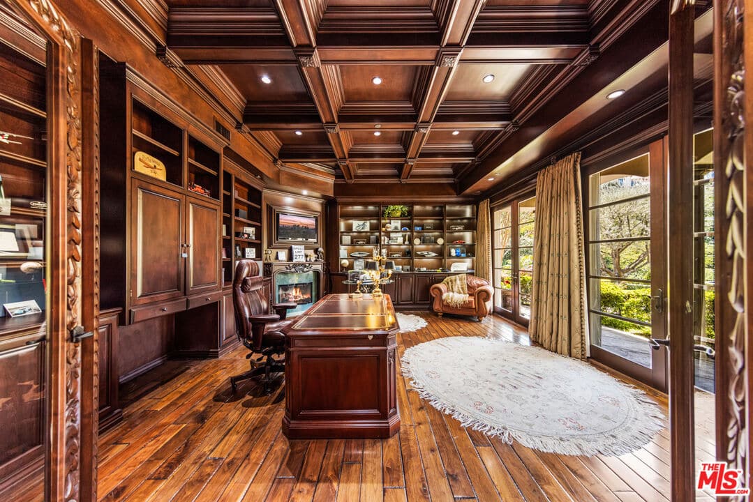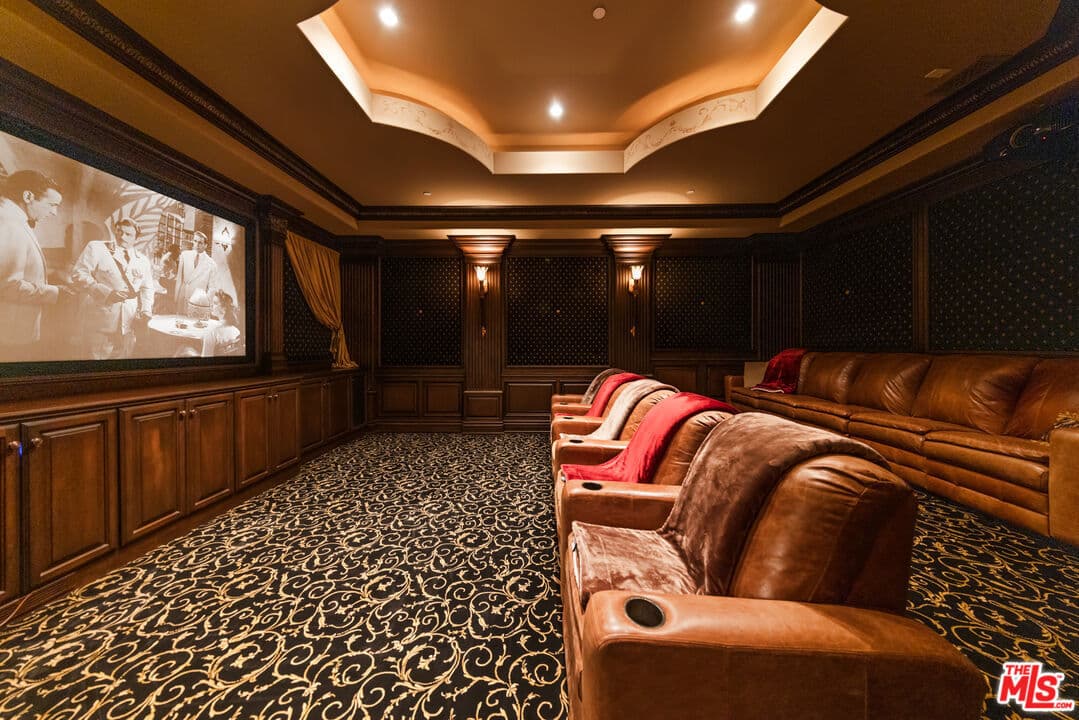 The home boasts all the expected amenities of an estate of this caliber complete with a 10-seat movie theater, 1,000 bottle wine cellar, game room with bar, gym and massage room, wood-paneled office and an elevator.