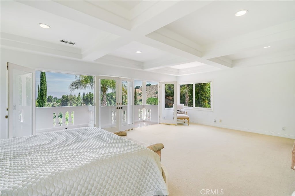 French doors open up to the backyard for flawless indoor/outdoor living spaces. The Custom Mediterranean Pool Home showcases four bedrooms and five and a half baths; two being oversized primary suites with en-suite bathrooms, large walk-in closets, cozy fireplaces, and balconies overlooking magnificent mountain views as well as valley vistas.