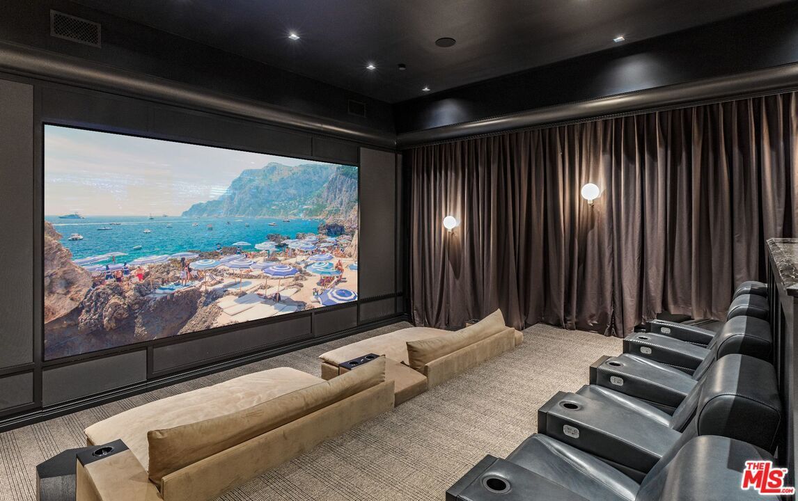 This estate features a 15 seat theater room, a wine cellar and a nine car garage.
