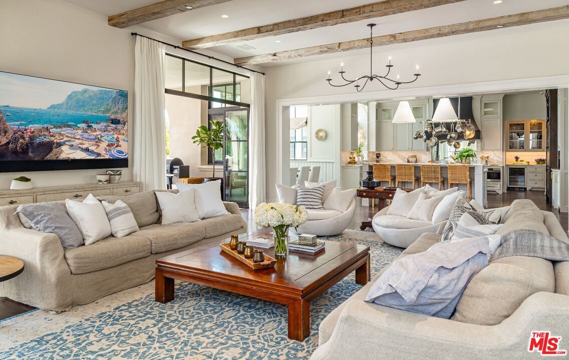 Located at 25314 Prado De La Felicidad in Calabasas, California, this home has countless features including antique wood beams, paneled walls and oak floors throughout.
