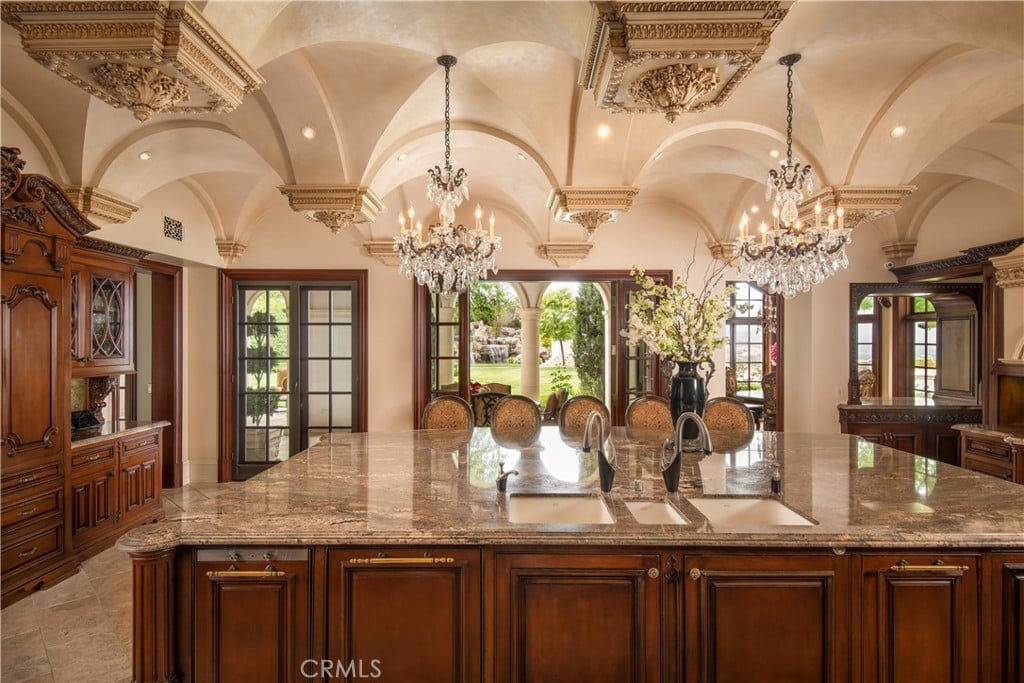 Custom closets add to the luxury. Elegant bi-fold doors open up to the grounds, which feature a 110′ award-winning infinity edge pool & spa, complete with stone bridges and waterfalls. There is also a guest house, fruit orchard and mature privacy landscaping providing a truly opulent retreat experience.