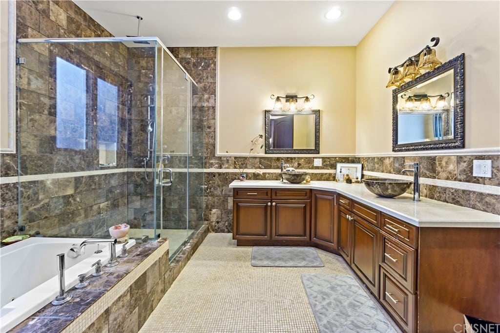 Plenty of room to roam outside too with sprawling & private backyard with grill, pool with fountain, spa & gated sports court wired for sound! A must see to experience. Location minutes from malls, the commons of calabasas, freeway, and award-winning schools.