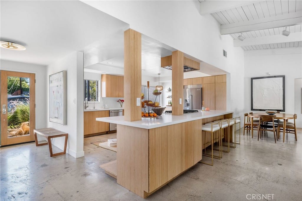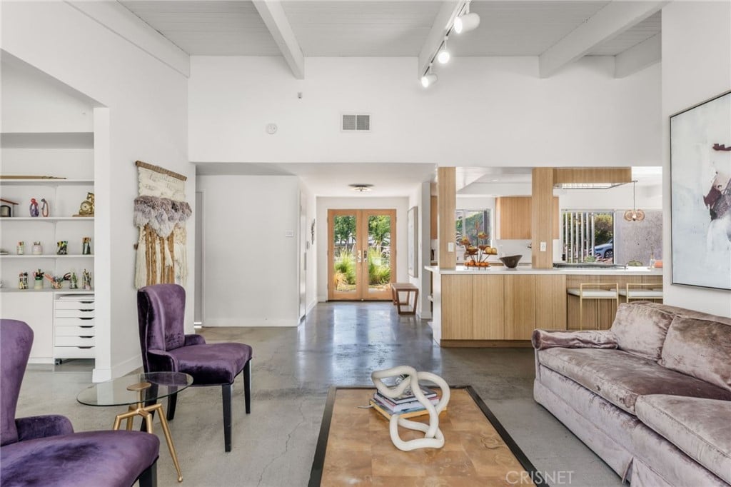 A meticulously redesigned house with no expense spared is located on a quiet cul-de-sac street and offers so much privacy and curb appeal. This architectural property boasts high vaulted ceilings, exposed wooden beams, and polished concrete floors. Enter through the glass door to an open and bright floor plan.