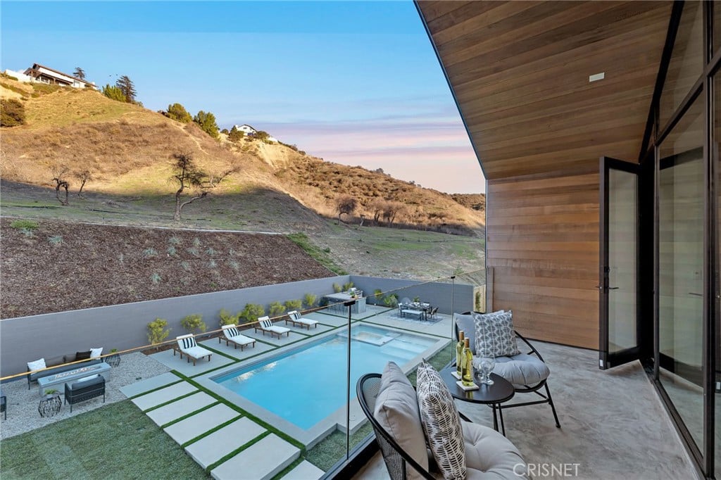 A Modern Marvel Pool Home, 20127 Chapter Drive in the desirable Vista de Oro community of Woodland Hills is located South of Boulevard and set amidst the peaceful foothills.