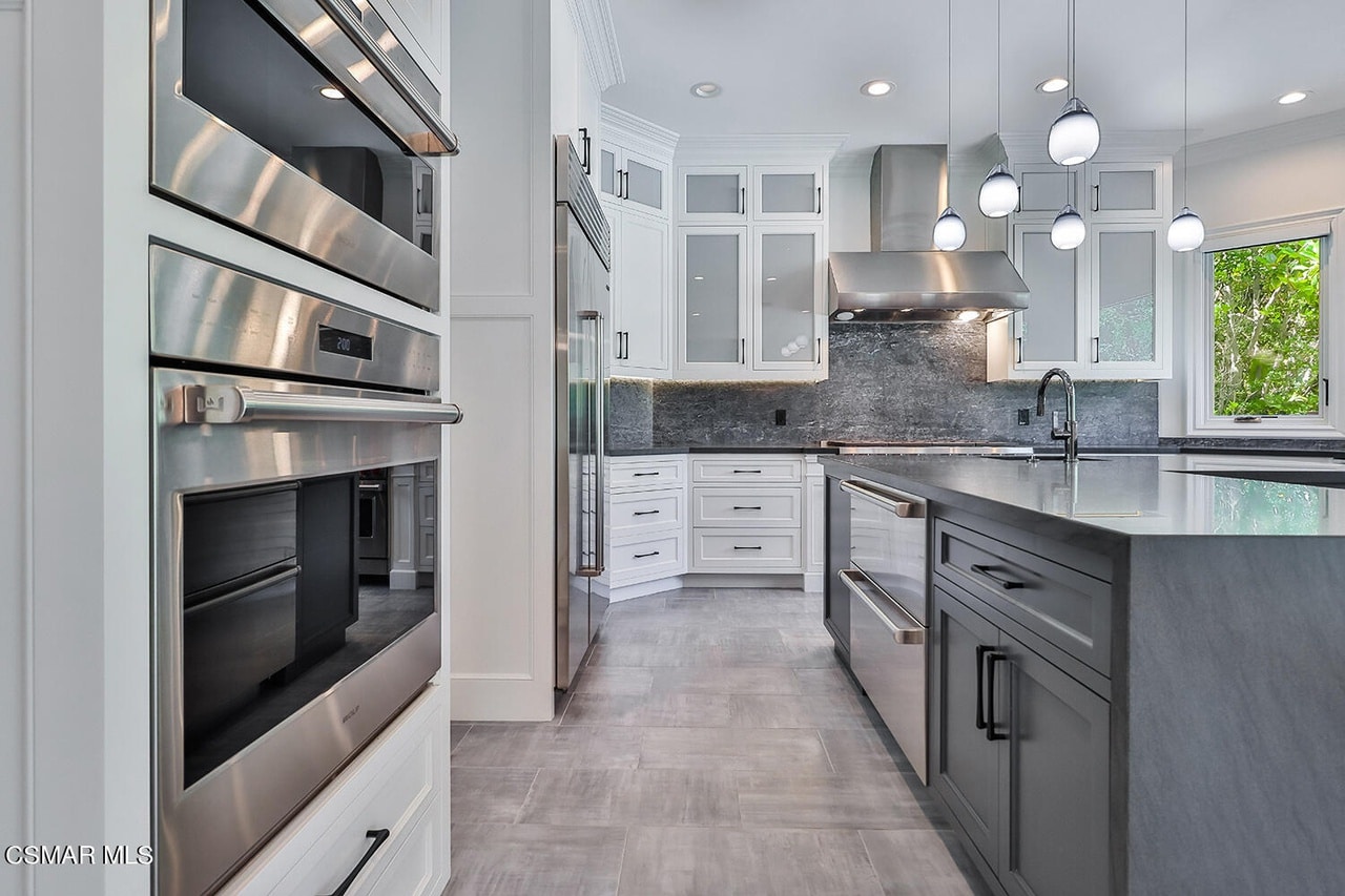 This stunning Calabasas Mountain View Pool Home is inside of a 24-hour guard-gated community.