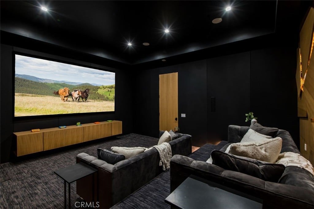A true indoor/outdoor living experience awaits as fully retracting floor-to-ceiling doors lead to the entertainer’s backyard, complete with a pool, infinity edge spa, sunken fire pit, and a fully equipped outdoor kitchen and bar, all set against the jaw-dropping backdrop of the magnificent mountains. The state-of-the-art movie theatre boasts a Dolby ATMOS system rarely installed in private residences, with direct access to the outdoor entertainment space.