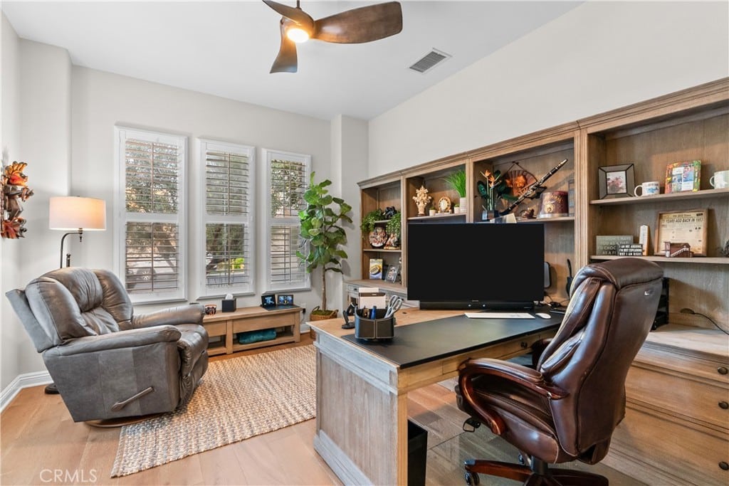 The impeccably landscaped front and backyards showcase mature plantings and extensive LED lighting. The entry courtyard features an auto-filling, filtered fountain just outside the Den/Office, creating a serene ambiance. The backyard is an entertainer’s paradise with a covered patio adorned with café lighting and a ceiling fan, a BBQ center complete with an AOG grill and refrigerator, and a Pebble Tec swimming pool that includes a spa, jets, lovely sheer descent water features, colorful LED lighting, and remote-controlled Pentair equipment.