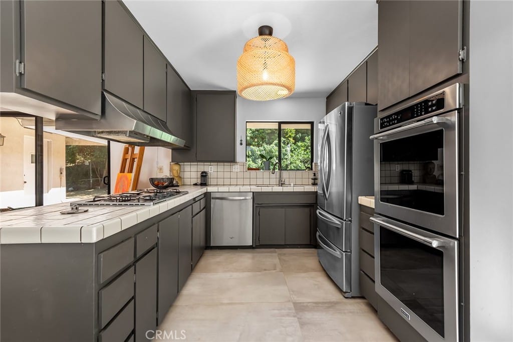To enhance the transition between indoor and outdoor living, doors from the kitchen to den have been installed allowing an abundance of natural light to enter