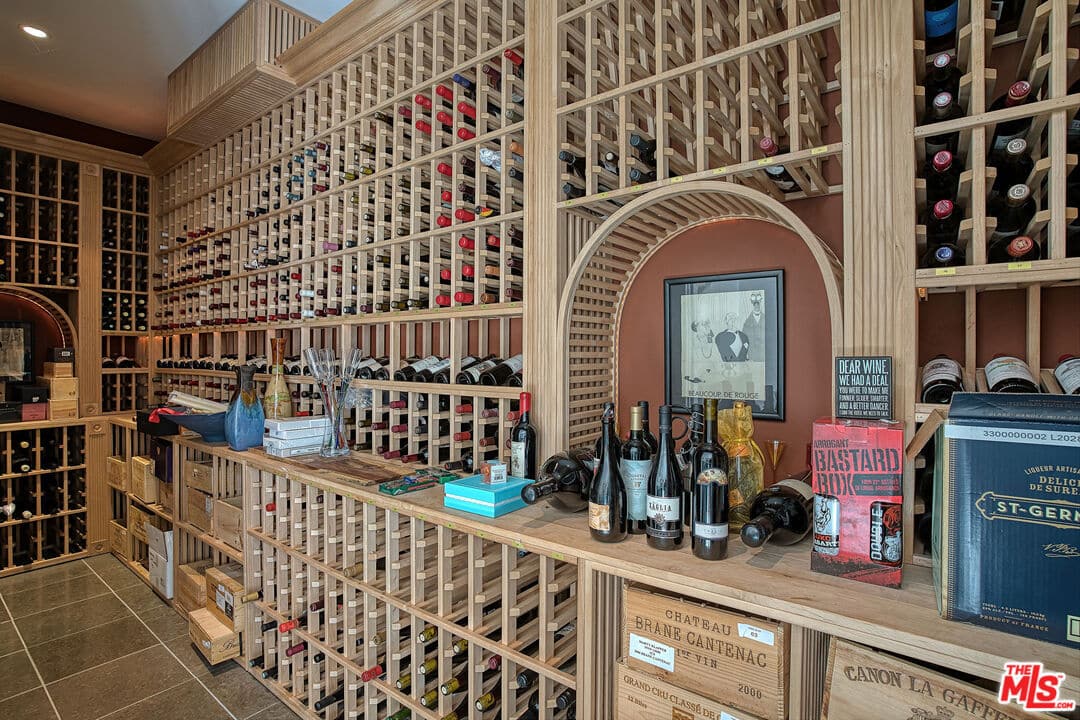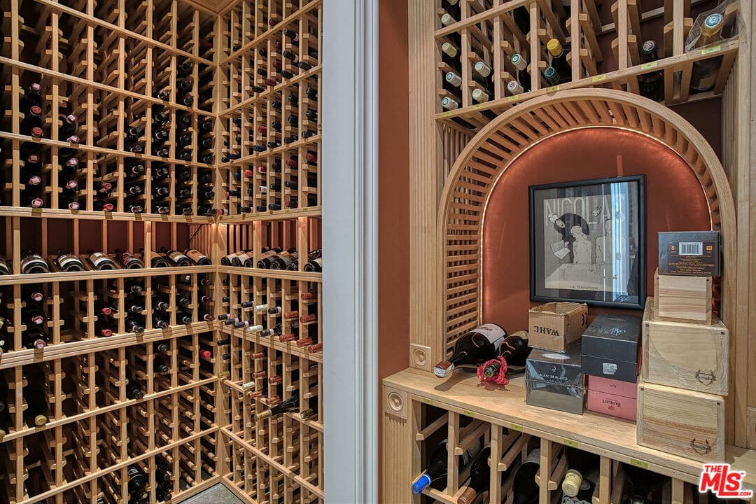 As you step inside through the grand two-story entrance, you’re welcomed by a light-filled formal living room with a fireplace on one side and a spacious, elevated loft on the other. The formal dining room showcases a custom-built wine cellar with the capacity to hold more than 1800 bottles.