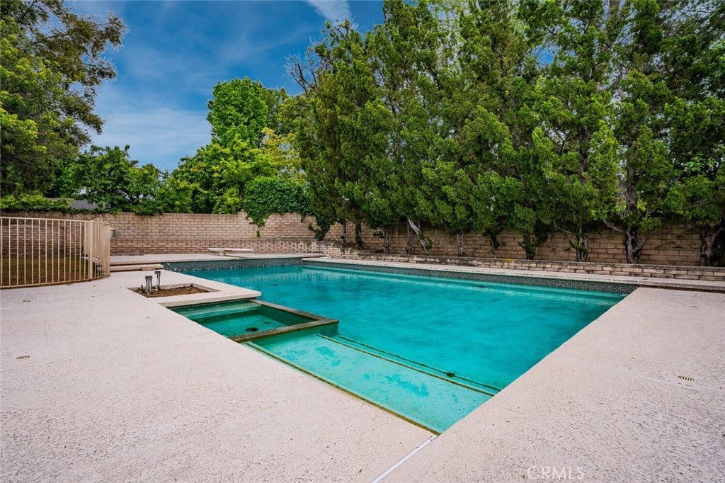 This Retro Vibe Woodland Hills Pool Home showcasing double doors that lead into a large foyer, it’s the perfect place to escape and relax.