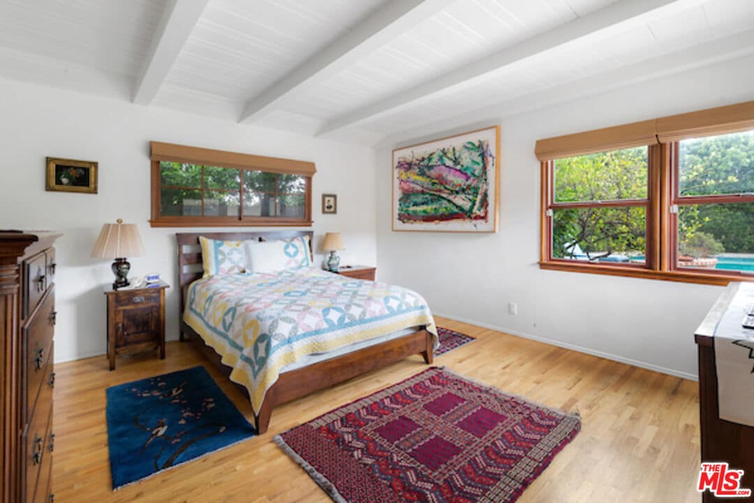 This stunning Woodland Hills pool property boasts three spacious bedrooms and two well appointed bathrooms, complete with gorgeous hardwood flooring and high beam ceilings.
