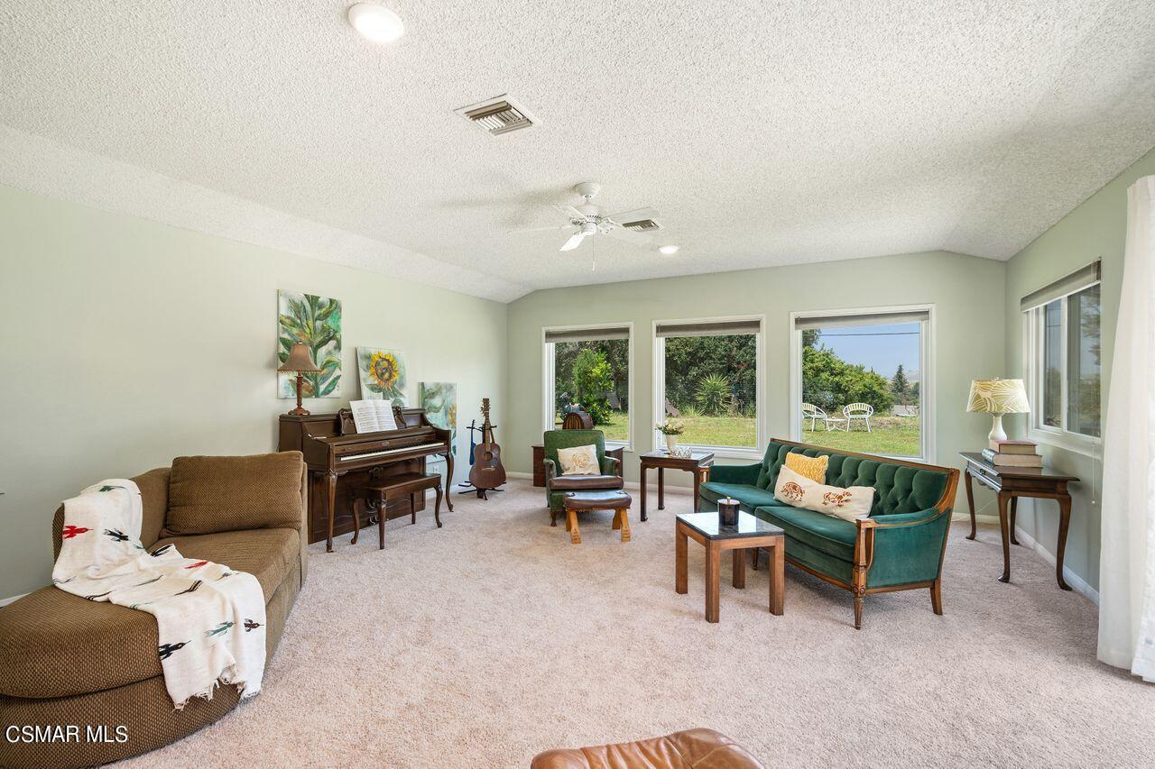 Step inside to the luminous living room and marvel at its distinctive design elements like the vaulted ceiling, wood burning fireplace, skylight bringing in natural light, and parquet flooring throughout. Adjacent to it is a generous family room with modern windows capturing the lovely mountainous landscape.