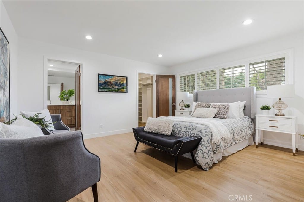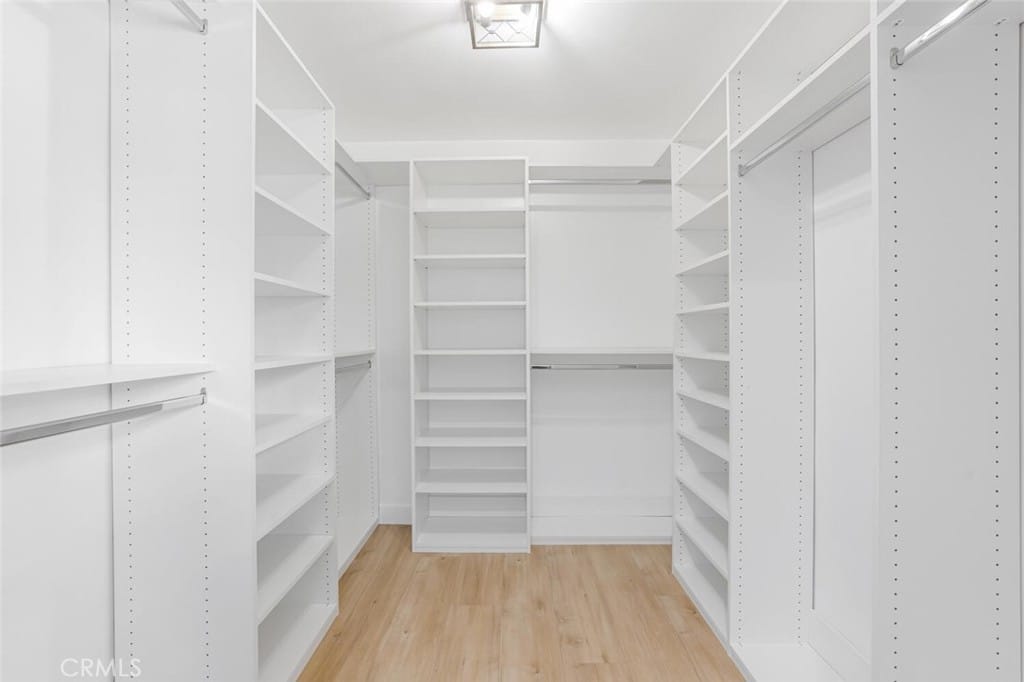 There are three bedrooms; one true master suite with its own walk-in closet, and two additional bedrooms that share a bathroom.
